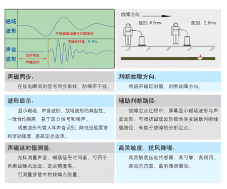 3.光標(biāo)測量聲磁延時,精確判斷故障點的遠(yuǎn)近。